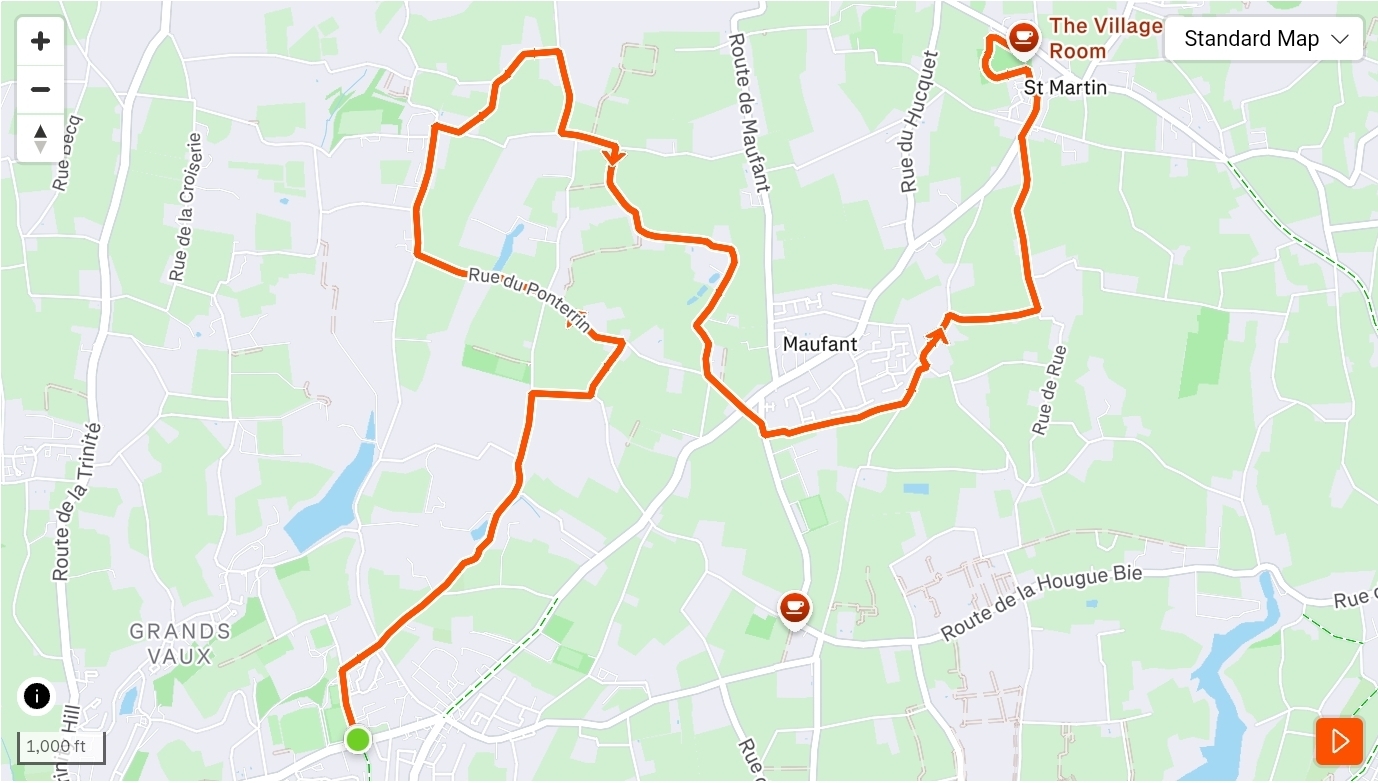 (NEW) Route: Grainville Playing Fields – Maufant – St Martins Tea Room (Out & Back)