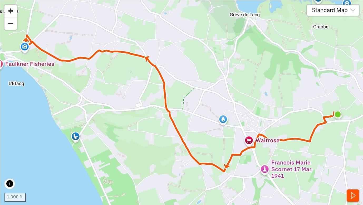 Route Details: A flat, runnable road route through the serene country lanes of St Ouens. Stunning views across St Ouens Bay are a highlight.