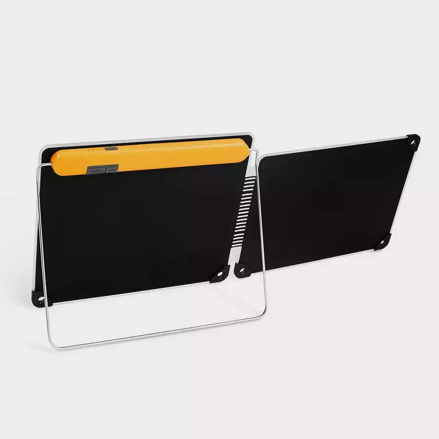 Get smart power from the sun with the portable BioLite SolarPanel 10+. Power tablets, phones, and other gear with 10 watts of usable electricity. Featuring BioLite’s Optimal Sun System, an integrated sundial aligns you to the sun to capture direct rays while a 360 degree kickstand simplifies positioning on uneven terrain. The folding design makes it easy to pack for any adventure. Use energy in real-time or store for later with the integrated 3,200 mAh battery.