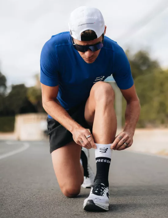 Top-of-the-range, second-skin mid-calf sock combining maximum ventilation and lightness with graduated compression for ultimate racing performance