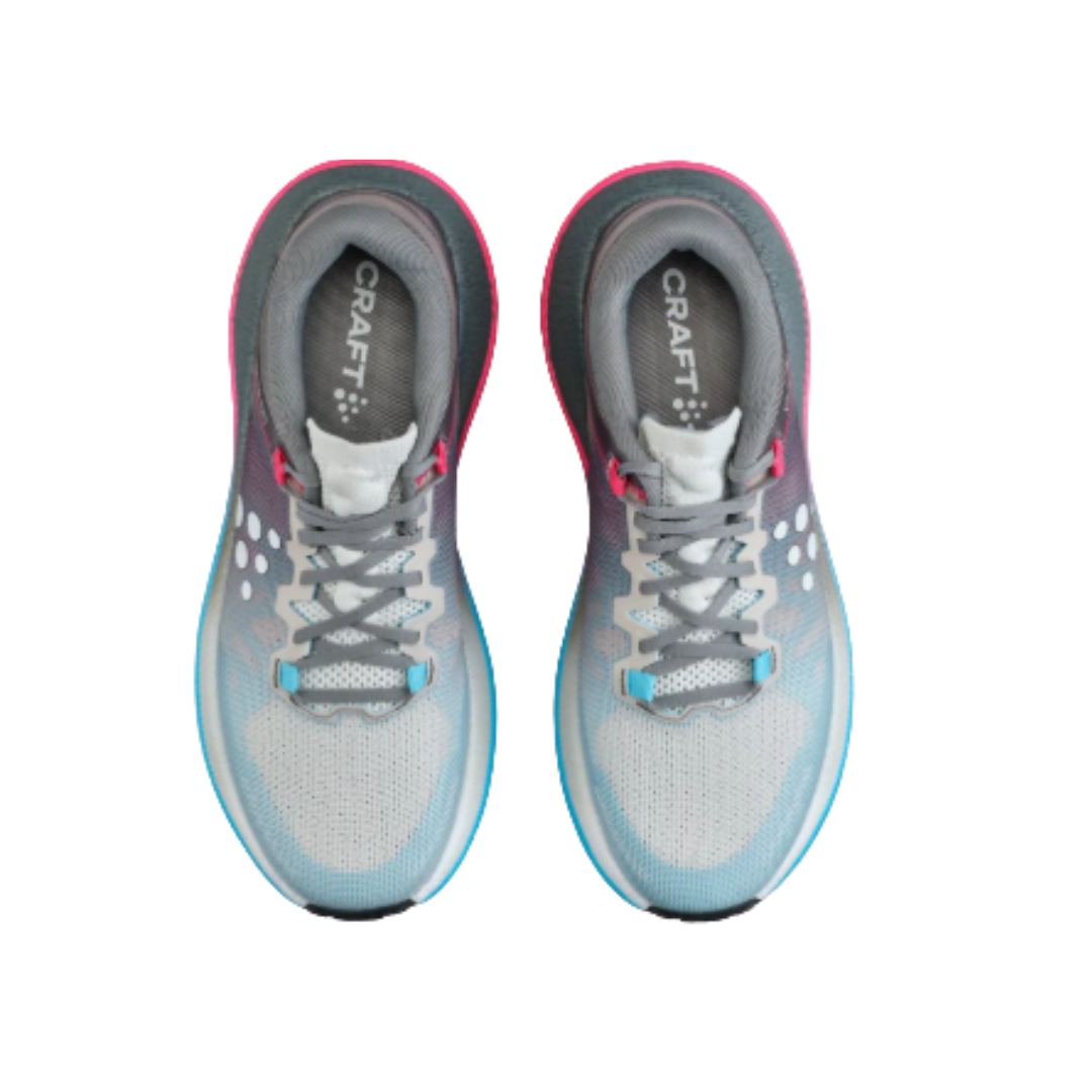 Craft Endurance Fit® features a narrow heel cup, mid-foot lock-in, and a spacious forefoot. The narrow heel cup ensures zero slippage, providing unmatched stability across all types of terrain. The mid-foot lock-in design offers a secure fit, boosting confidence with every stride. In addition, the spacious forefoot enables natural toe and metatarsal movement, enhancing comfort even more.