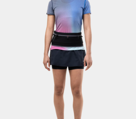 Extremely practical, this clever one-sized-fits-all belt allows quick and comfortable storage for any run. The secret is in its simplicity. It fits at one with you and carries all your items unnoticeably so you can focus on your run. The stretch mesh provides stability, almost no hip bounce and comfort.
