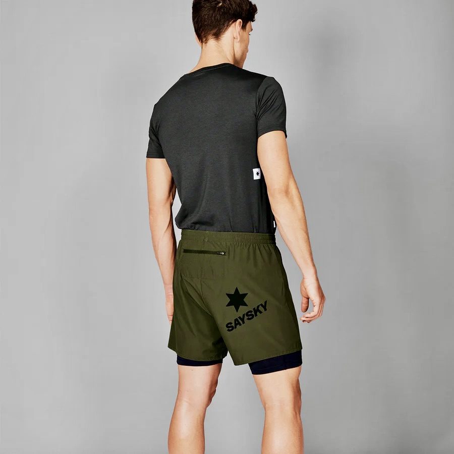 The SAYSKY Pace 2-in-1 Shorts 5″ are high-performance running shorts for men who want the best of both worlds—lightweight freedom and supportive coverage. The outer shell is breathable and quick-drying, while the built-in inner tights provide a secure fit when picking up speed. Four-way stretch fabric ensures unrestricted movement with every step. Designed for everything from road runs to rugged trails, these shorts come with multiple storage options.