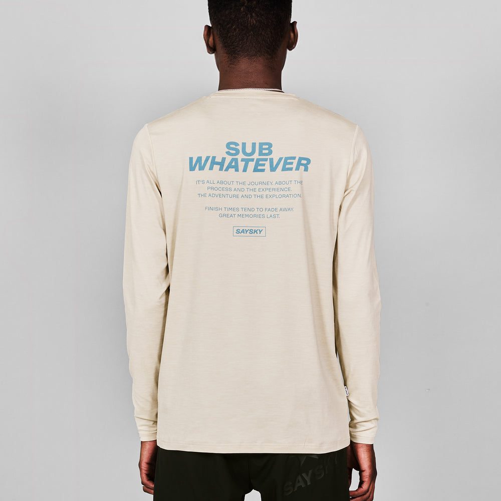 The SAYSKY Statement Pace Long Sleeve is a long sleeve running t-shirt with a motivating back print featuring a SAYSKY original statement. Our pace fabric is ideal if you’re looking for a slightly heavier, yet super soft fabric with great wicking abilities.