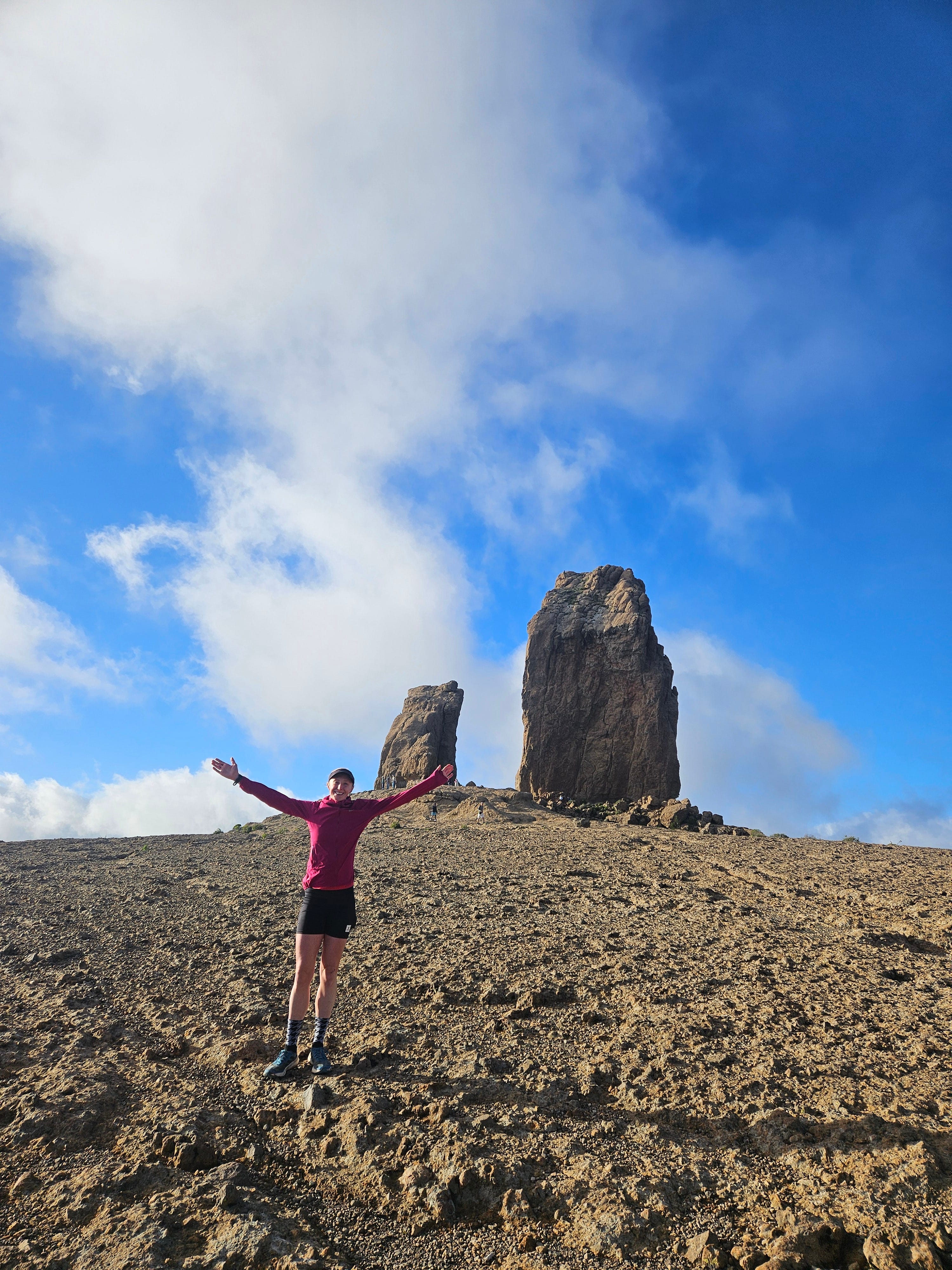 The next section involved a seemingly endless 1700m climb up to Rocque Nublo, an iconic 90m tall rock formation which juts above the cloud line. The constant fear of falling to my death was a welcome distraction at this stage of the race. On a positive note, I was climbing well, managing to run the flats and gentler climbs and use my poles to power up the steeper sections. My side stitch had dissipated too which was a huge relief – electrolytes to the rescue once again.