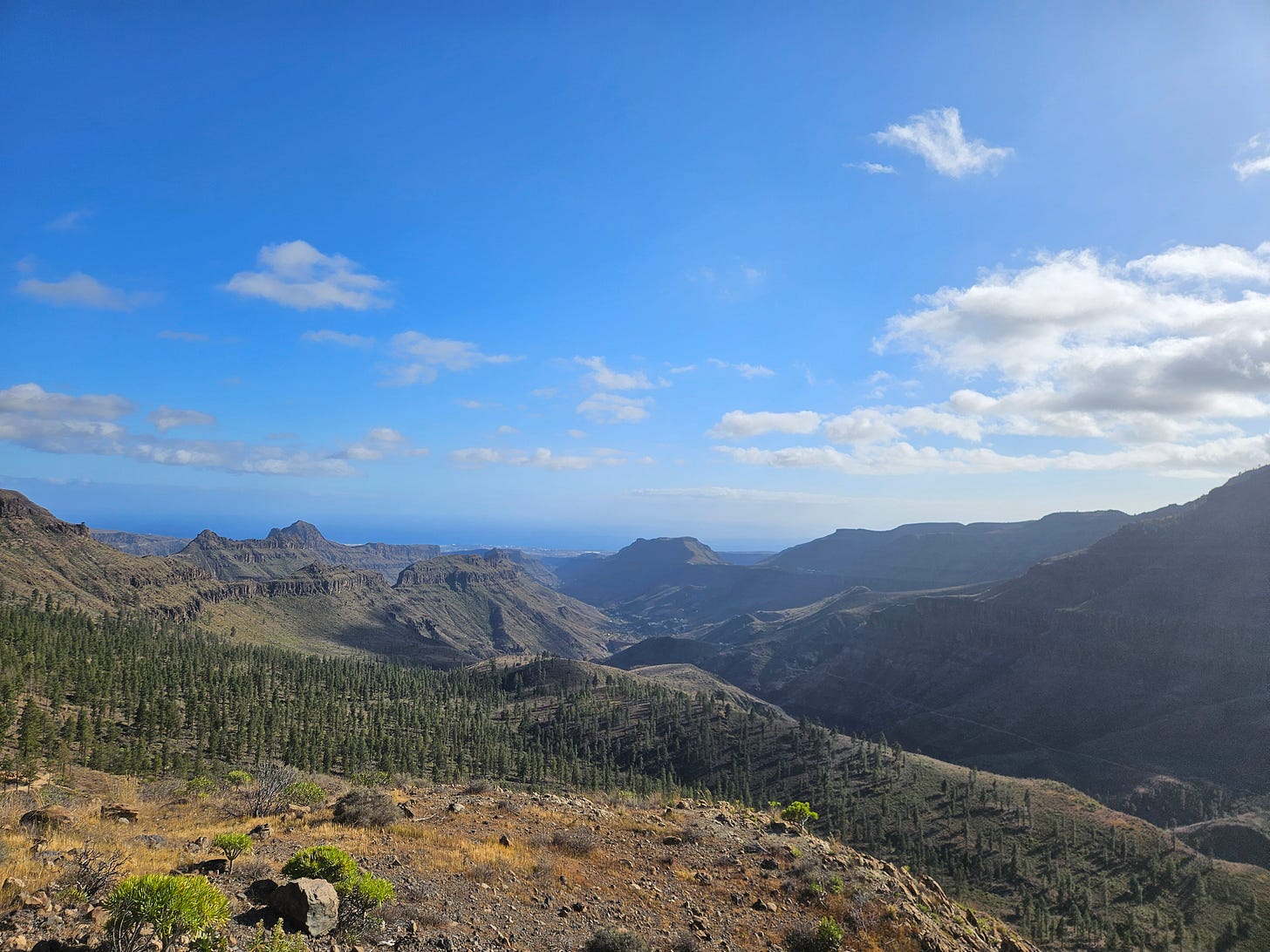 Masapalomas peaking out of the canyon in the distance
