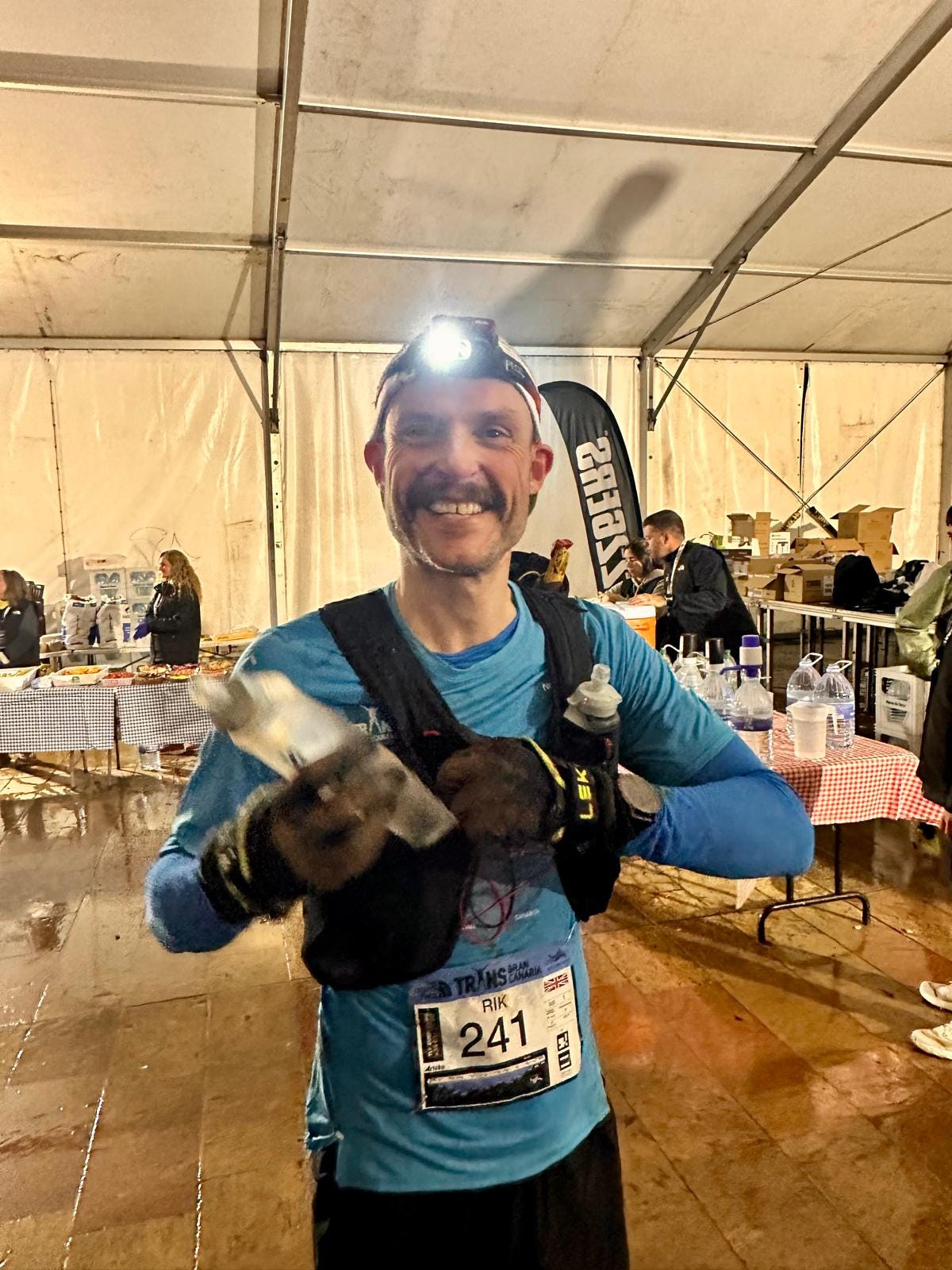 I was in and out of Tenoya aid station without needing anything and proceeded towards Arucas which was 20km in. It was at this point that both the climbing and the rain started and neither would cease until we reached the South about 12 hours later. I made sure to put my waterproof jacket on over my pack straight away to avoid getting my base layer and tee wet. I already had two pairs of gloves on but couldn’t find my waterproof overmitts whilst running so opted not to put them on. A decision I would pay for later.