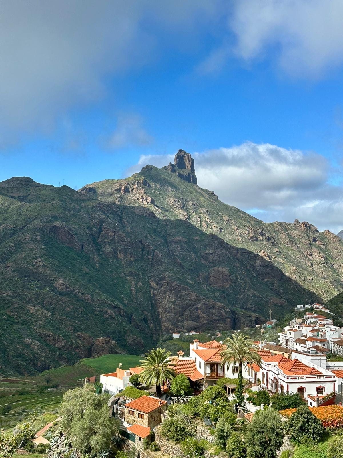 Rocque Nublo towering over the little mountain town of Tejeda